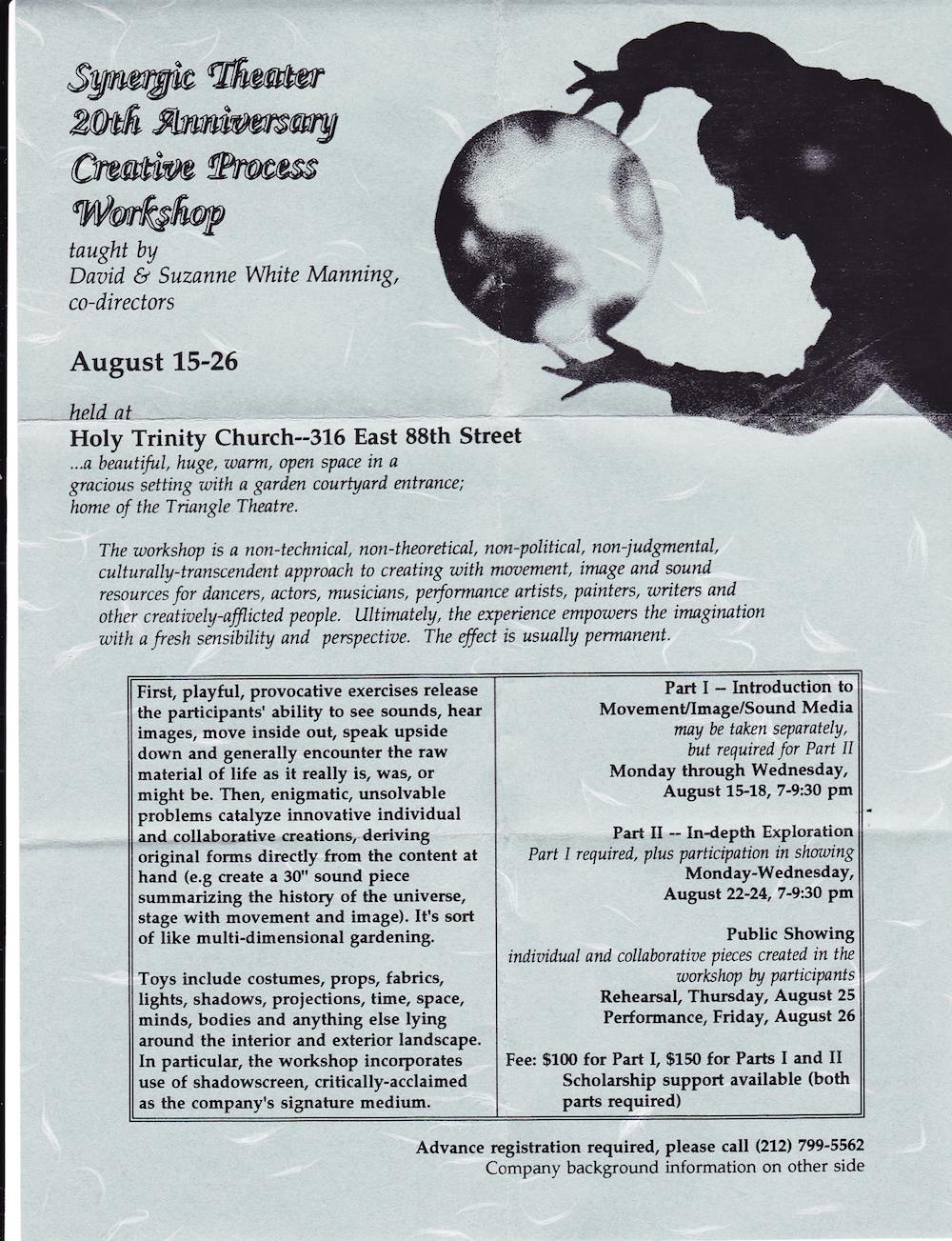 20th Anniversary Workshop flyer, August 1994