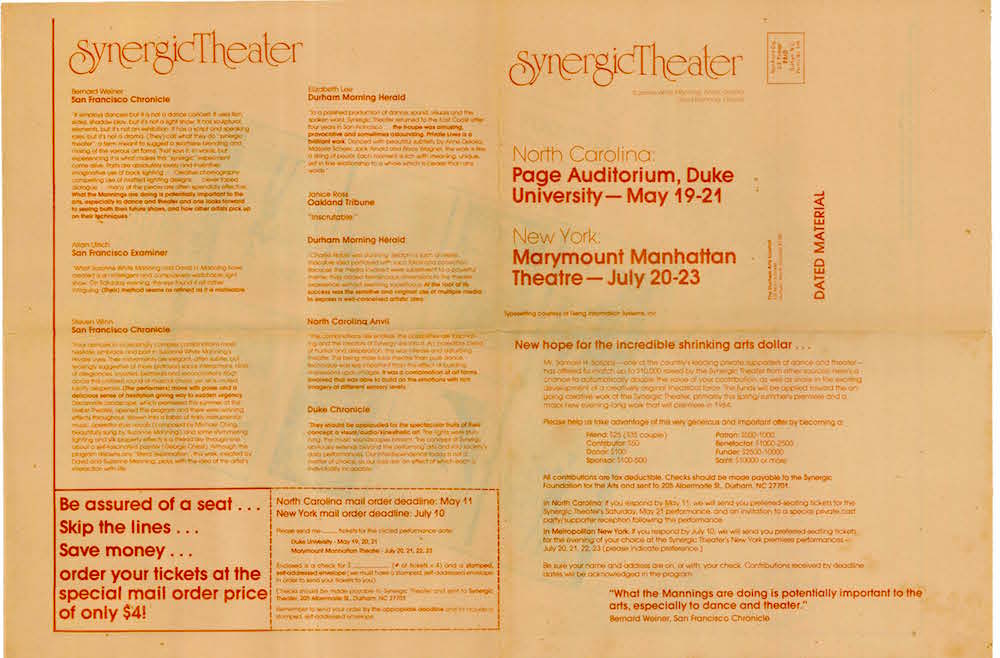 Direct links to each one are also included below, along with pdfs of accompanying programs and, when available and relevant, scripts of spoken text. Some of the scripts also include stage directions and/or lighting cues. (Reviews can be found in commentary.) Further creative process resources can be found under Manuscripts in the Offstage section of this website.