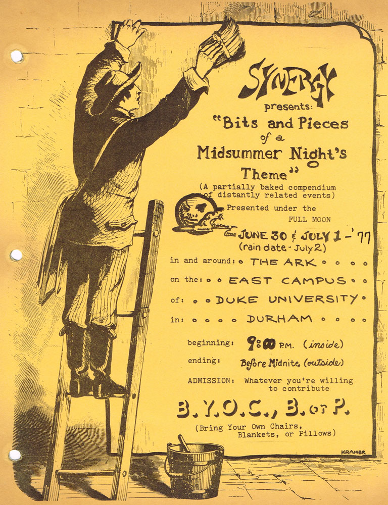Workshop performance flyer, The Ark, Duke, 6/77
